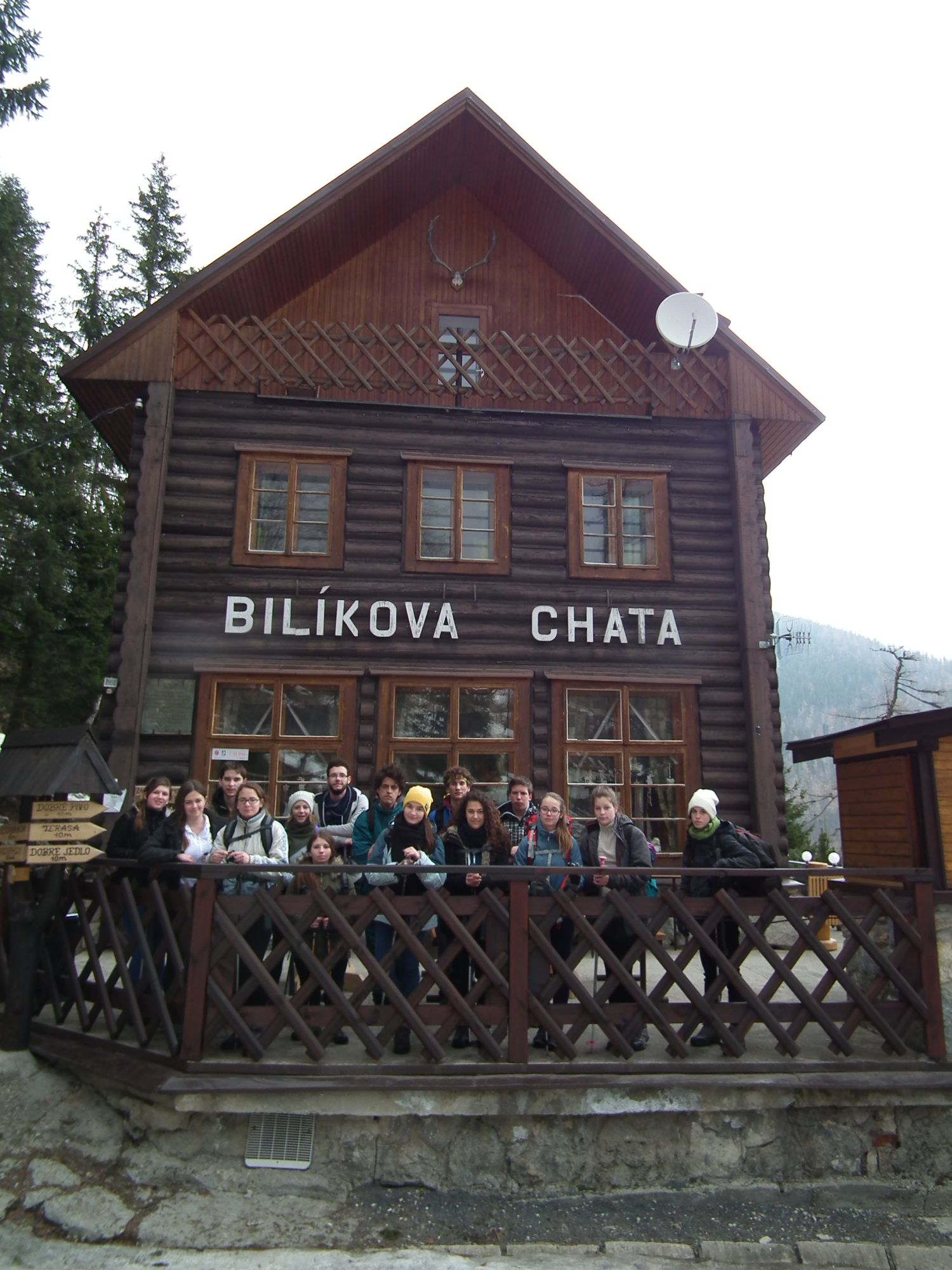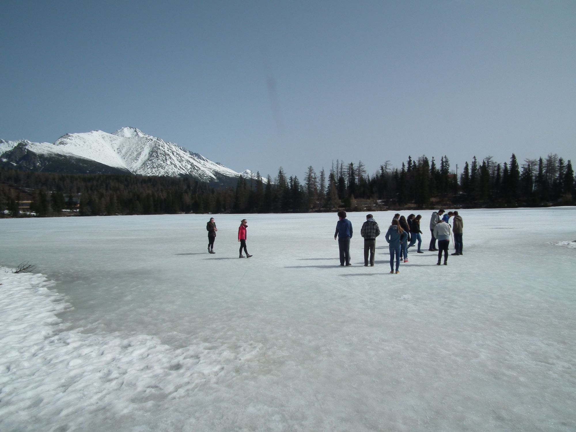 Másnap, pénteken reggelink elfogyasztása után elsétáltunk a Tátrai-villamoshoz (közismert nevén elektricskához), hogy azzal utazzunk tovább. Erről leszállva két nagyon hosszú kabinos sífelvonó szállított minket fel a hegyre, a Lomnici-csúcs alá, ahonnan túránk indult. Az első szakasz a Kőpataki-tótól lefelé kicsit meredek volt, és hozzá is kellett szoknunk a nagy hóhoz és a terepviszonyokhoz, de miután ez sikerült, gondtalanul élvezhettük a gyönyörű hegyi tájat és a kilátást a Poprádi-medencére. Utunk során láthattunk völgyekben még ekkor, tavasszal is vastag jégpáncélba burkolózó patakokat, a Nagy- és Kis-Tarpataki-vízeséseket, lavinák maradványait és egy 11 éve ott pusztító hatalmas szélvihar nyomait egyaránt. Külön élvezetessé tették a túrát az ösvényeken lévő befagyott pocsolyák, melyeken könnyűszerrel fenékre lehetett huppanni. Szállásunkra a délutáni órákban érkeztünk. Egy gyönyörű fából épült menedékházban (Bilikova chata) tölthettük az éjszakát. Vacsora után, ami persze helyi ételekből, savanyú káposztalevesből és sztrapacskából állt, tettünk még egy kis sétát a környéken és egy szuper hó csatát rendeztünk, amit persze még kísérőnk, Buday tanár úr sem úszhatott meg találat nélkül.